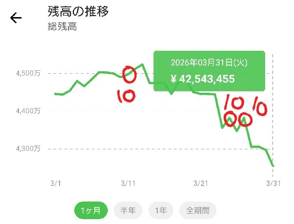 それを除くと200万以上の資産減でした。