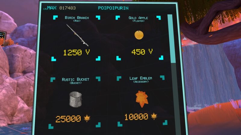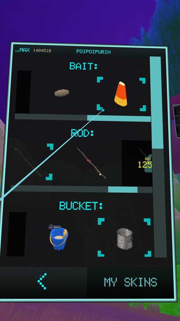 この釣りワールドでは季節ポイントを貯めると、季節特有の竿やバケツ(スキン)を入手することができます。