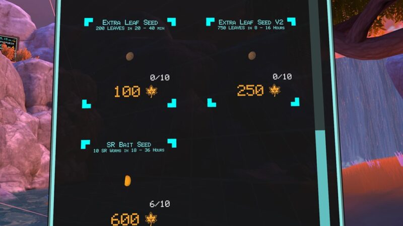 ・10分で育つ「TRASH BAIT SEED x5」を所持数MAXまで購入、植える