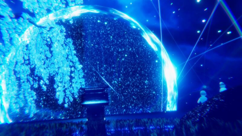 自身の目で見た景色はパーティクルと深い蒼のコントラストが協調されて神秘的だった。