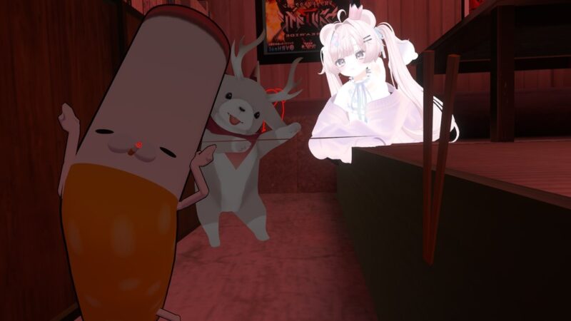 このゲームはあくまでもボイスチャットを楽しむのがメインなので、一か所に留まって雑談するプレイスタイルの人の割合が多い。雑談メインの人たちは入口に留まり、自分だけ黙々と写真撮影。そして深刻な話をしている海外フレンズに「次に移動してもよいか?」と誘導するのはそれなりにメンタルゲージを持っていかれていた。なので、メンタルをすり減らさないように隠れることがある。