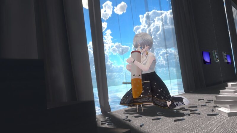 シケモクくん。サンプルのアバターだと足元にシケモクが散らばる仕様。人型アバターと比べるとその小ささが際立つ。