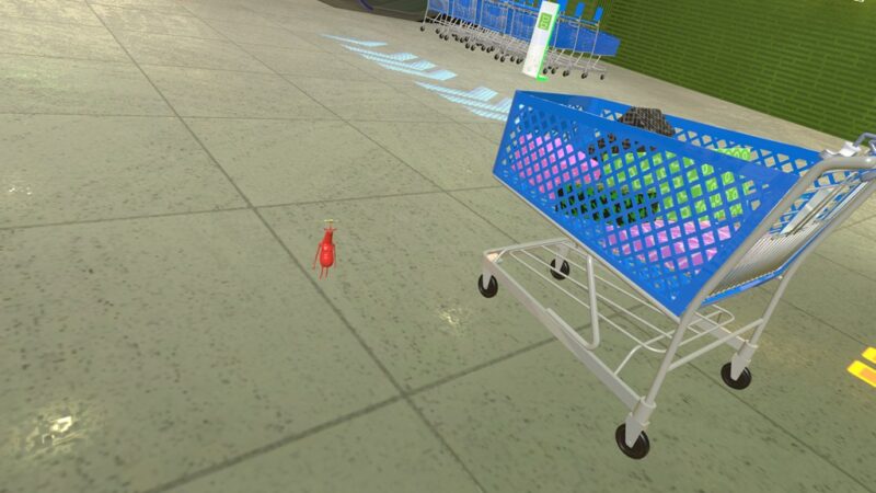 このワールドでは、設置してあるアイテムを右のカートに投入していくようだ