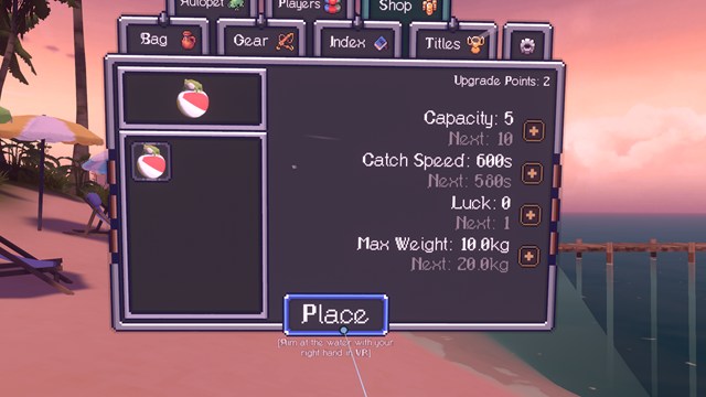 ・Luck(運):レア度の高い魚が釣れ安くなる