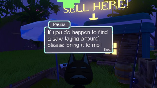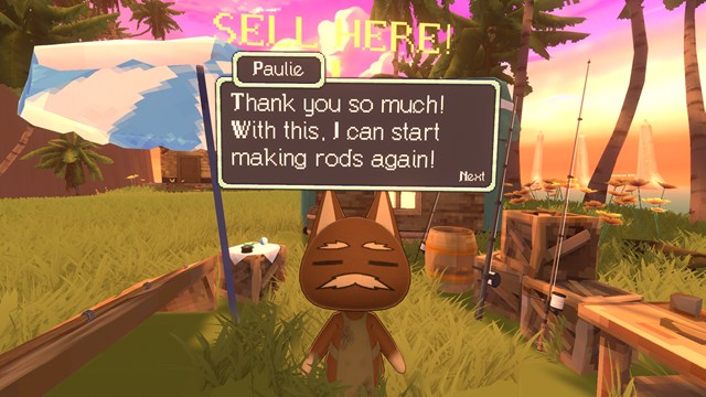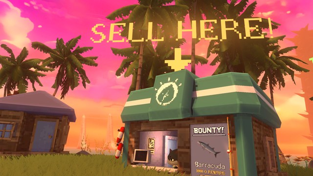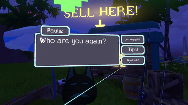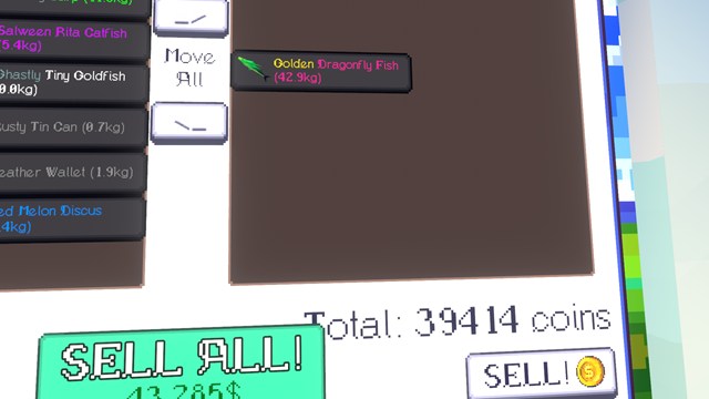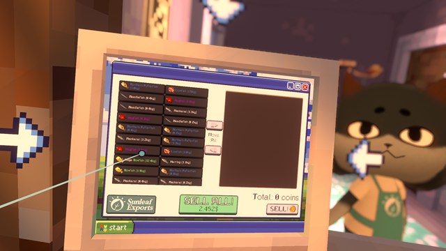 NPCに話し掛けると横にあるパソコンから魚を売ることができます。