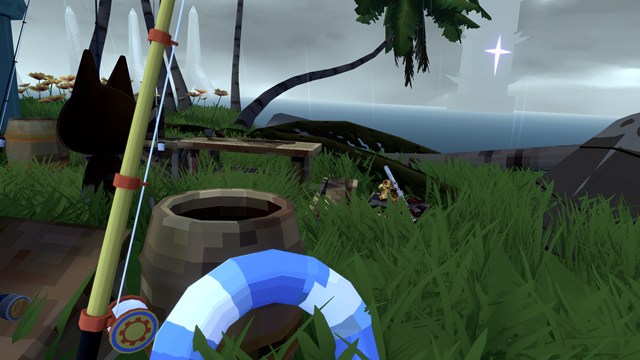 ・竿を振ってトリガー(人差し指のボタン)でキャスト