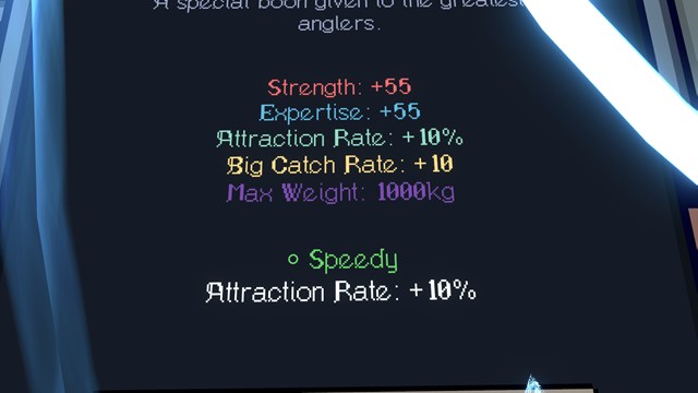 SpeedyのCommonで魚が食い付くスピードが+10%でした。