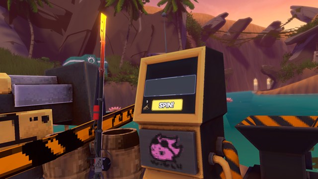 砂漠の島(Luxian Dunes)のピラミッドの前にある機械でガチャができます。