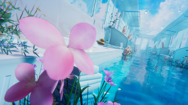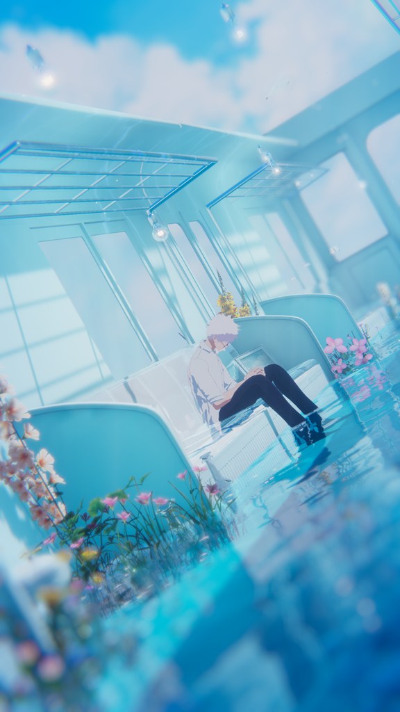 電車、青空、水面、花、本、絵画、白、ビル群な美麗フォトスポットワールド